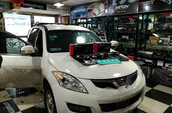 丰田威驰,绝对的新车,刚提没多久,车主很喜欢音响,但是这车的音响配置是在是太低了,只有两个中低音喇叭装在前门门板上,没有高音,后门...