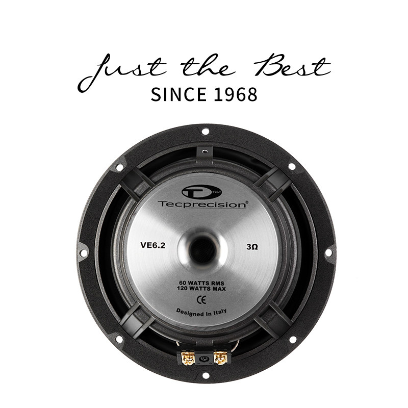 小结:对于VE6.2的听感,有很好的平衡性,兼顾动态和高解析的细节还原,高灵敏度不吃功率,重点是结构设计好安装,另有同系列的VE3中音可搭配成三分频,一台DSP功放一套VE套装的小改,就可打造出轻烧三分频设计。在音质追求上,TEC爱神系列传承着追求Hi-end的极致发烧,但在价格上,4000元左右的价格,好音响也有好价格,当然值得推荐。 意大利TEC VE6.2两分频产品参数/ 额定功率:60W / 峰值功率:120W / 额定阻抗:3Ω / 灵敏度:91dB
